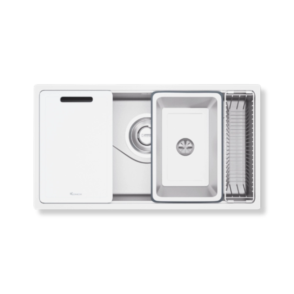 Chậu rửa bát Konox TARI 8748SM inox 304 cao cấp, thiết kế phong cách Nhật, bề mặt mịn chống xước, phụ kiện thông minh, bảo hành chính hãng 10 năm.