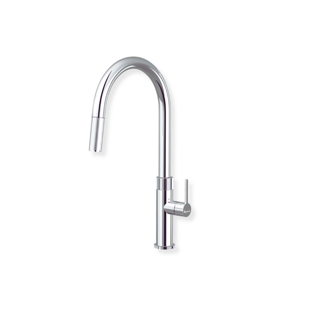 Vòi rửa bát rút dây Konox Lasi Chrome thân tròn uốn cong tinh tế